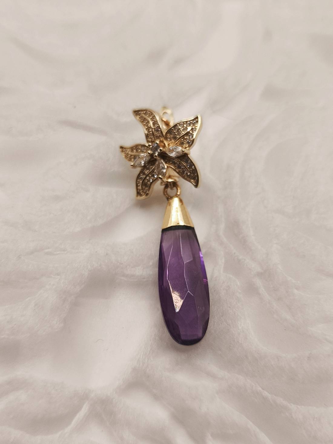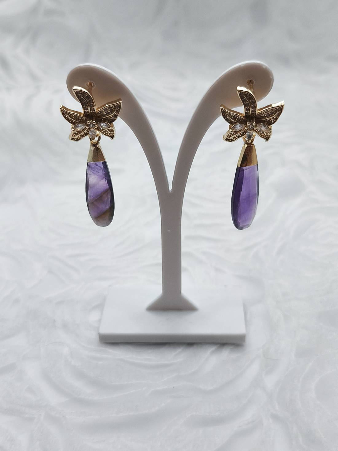 - Materials: Natural Amethyst semi-precious stone, Cubic Zirconia (CZ).