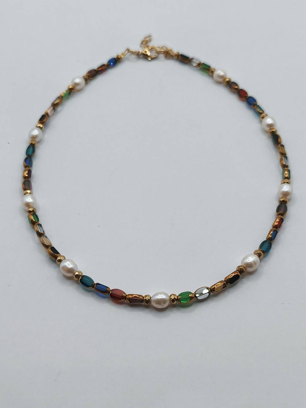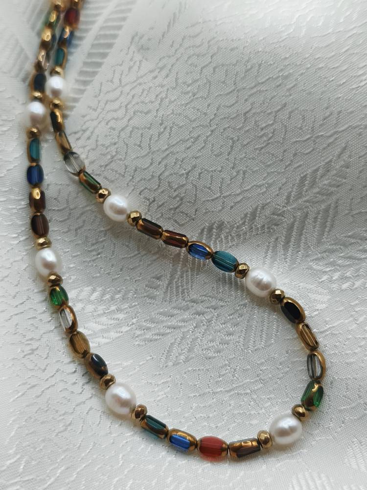 - Materials: Multicolor Glass Beads, Natural Pearls, Hematite elements.