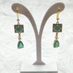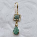 Handmade drop earrings from the Amavero collection, combining the natural allure of amazonite with the intense brilliance of zircon. The design features a square amazonite semi-precious stone framed by small clear cubic zirconia, while a striking teal-colored zircon teardrop hangs at the base. An aristocratic combination that exudes serenity and timeless elegance, perfect for adding a touch of luxury to any look.