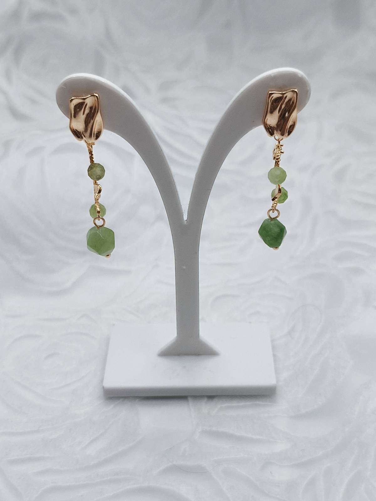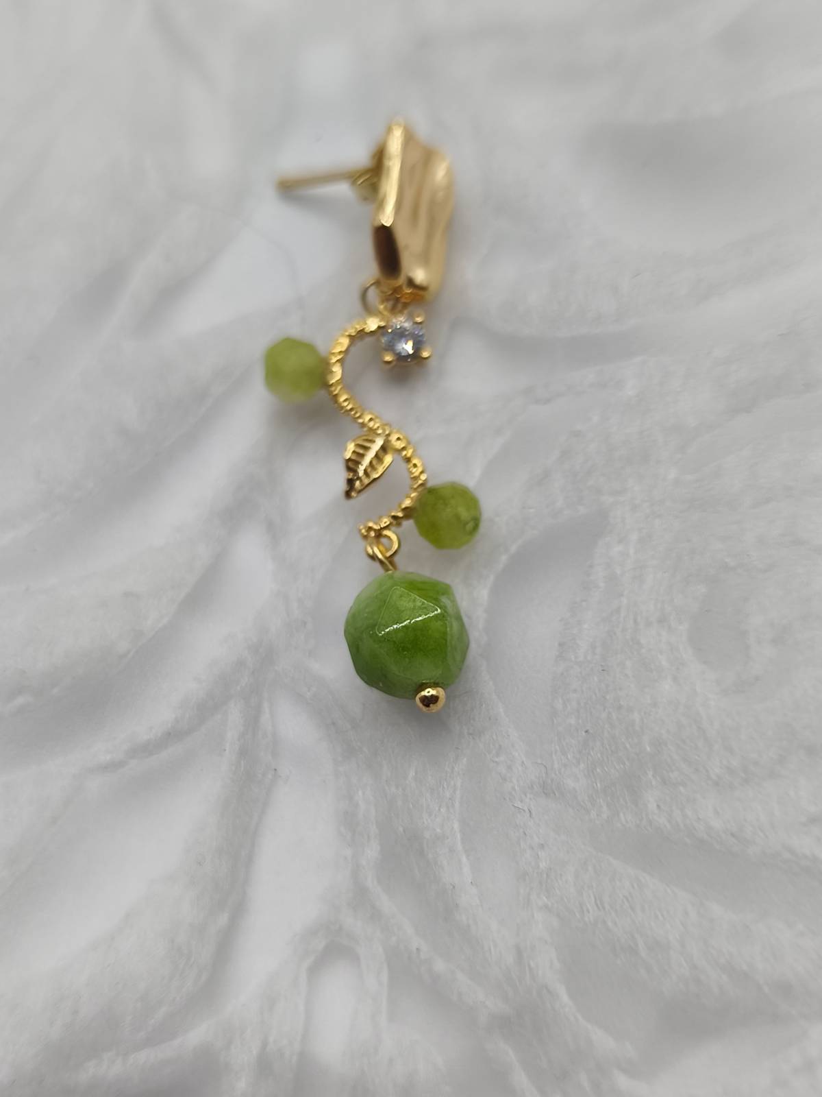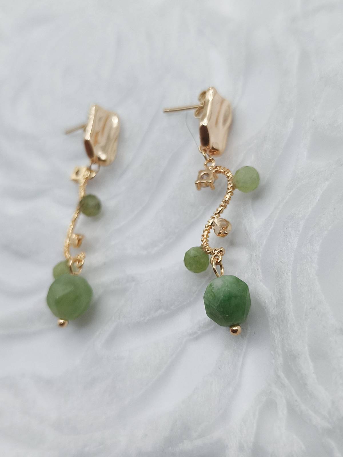 - Materials: Natural green stone, subtle cubic zirconia accents.