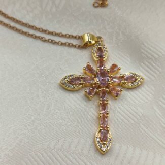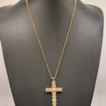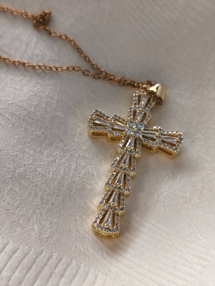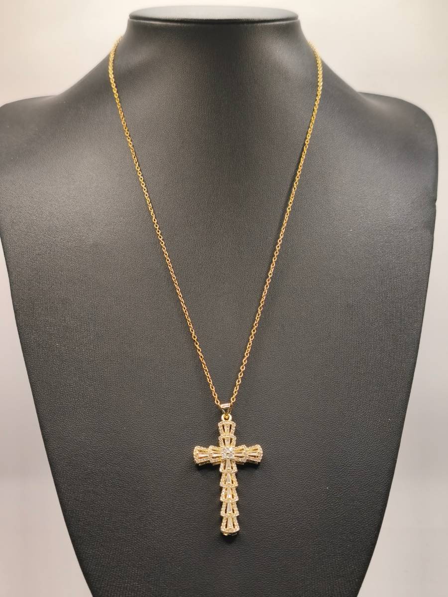 - Metal: Gold-plated brass cross, Gold-tone Stainless Steel chain.
