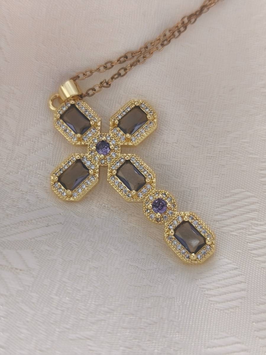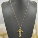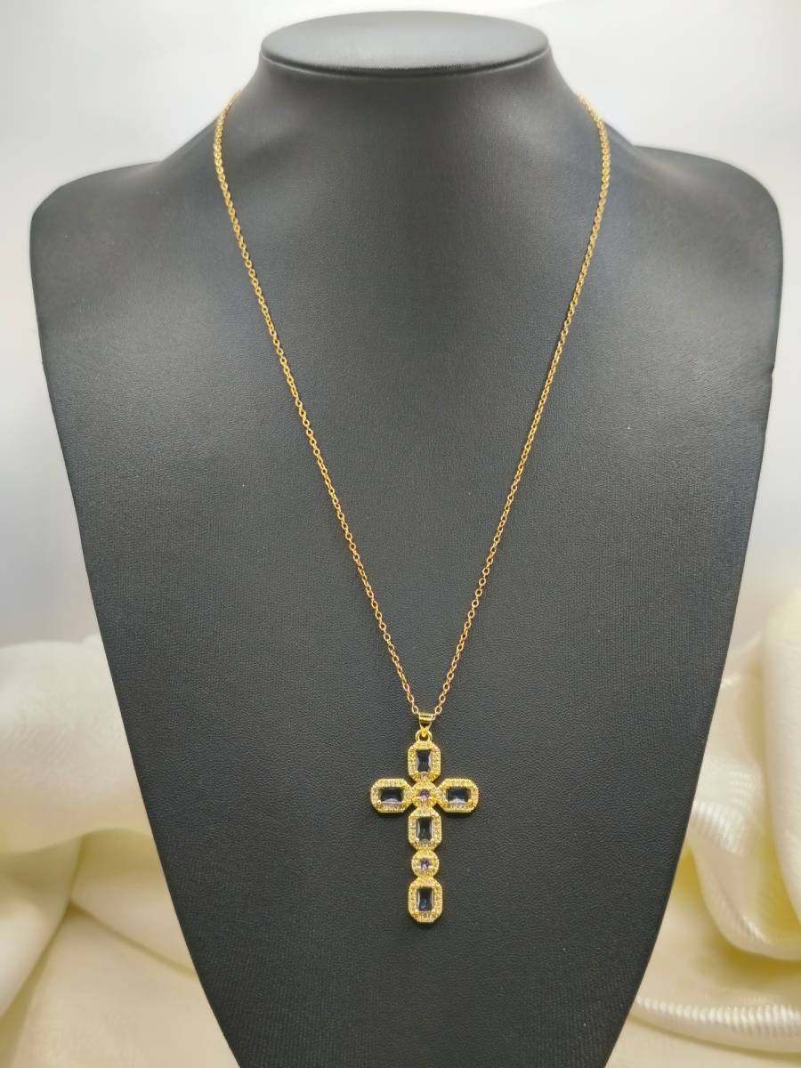 - Metal: Gold-plated brass cross, Gold-tone Stainless Steel chain.