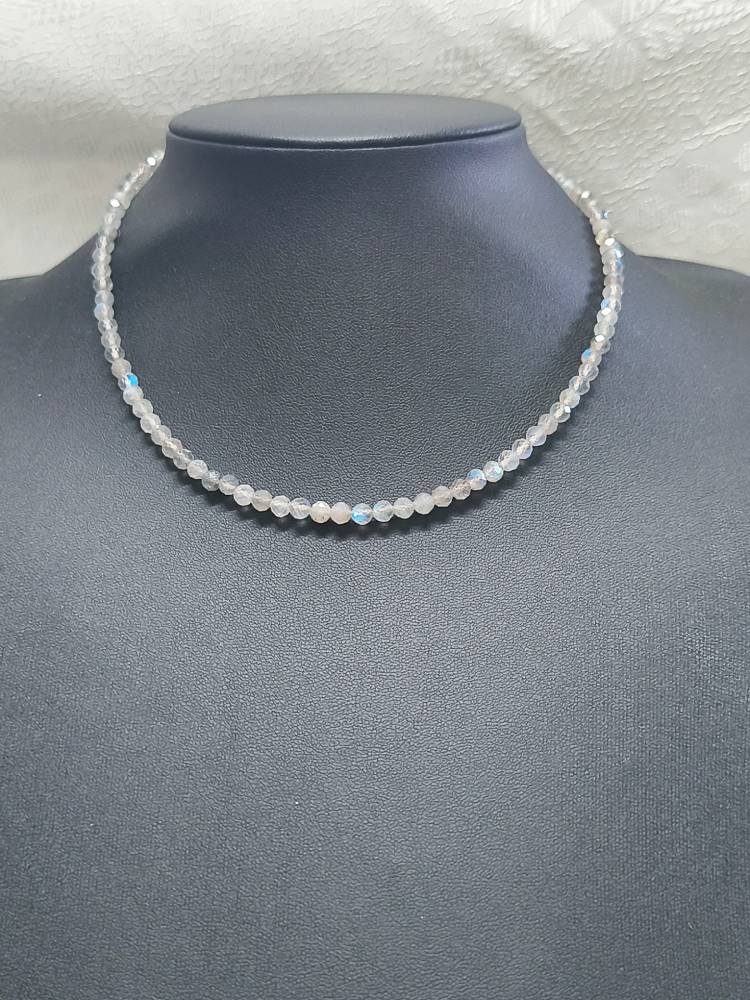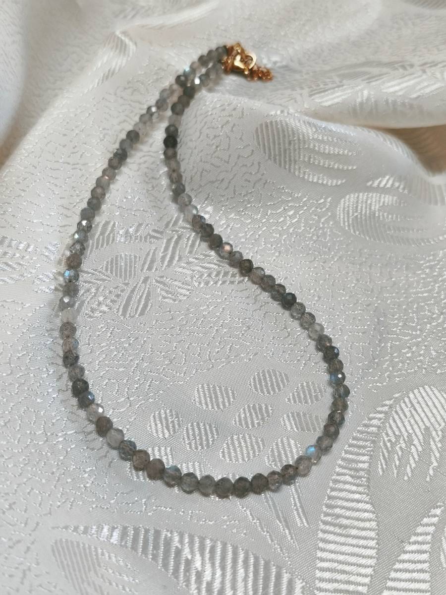 Due to the natural origin of Labradorite, the iridescence and grey/blue reflections vary in each stone, making your necklace truly one-of-a-kind.