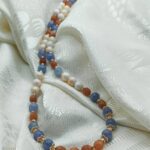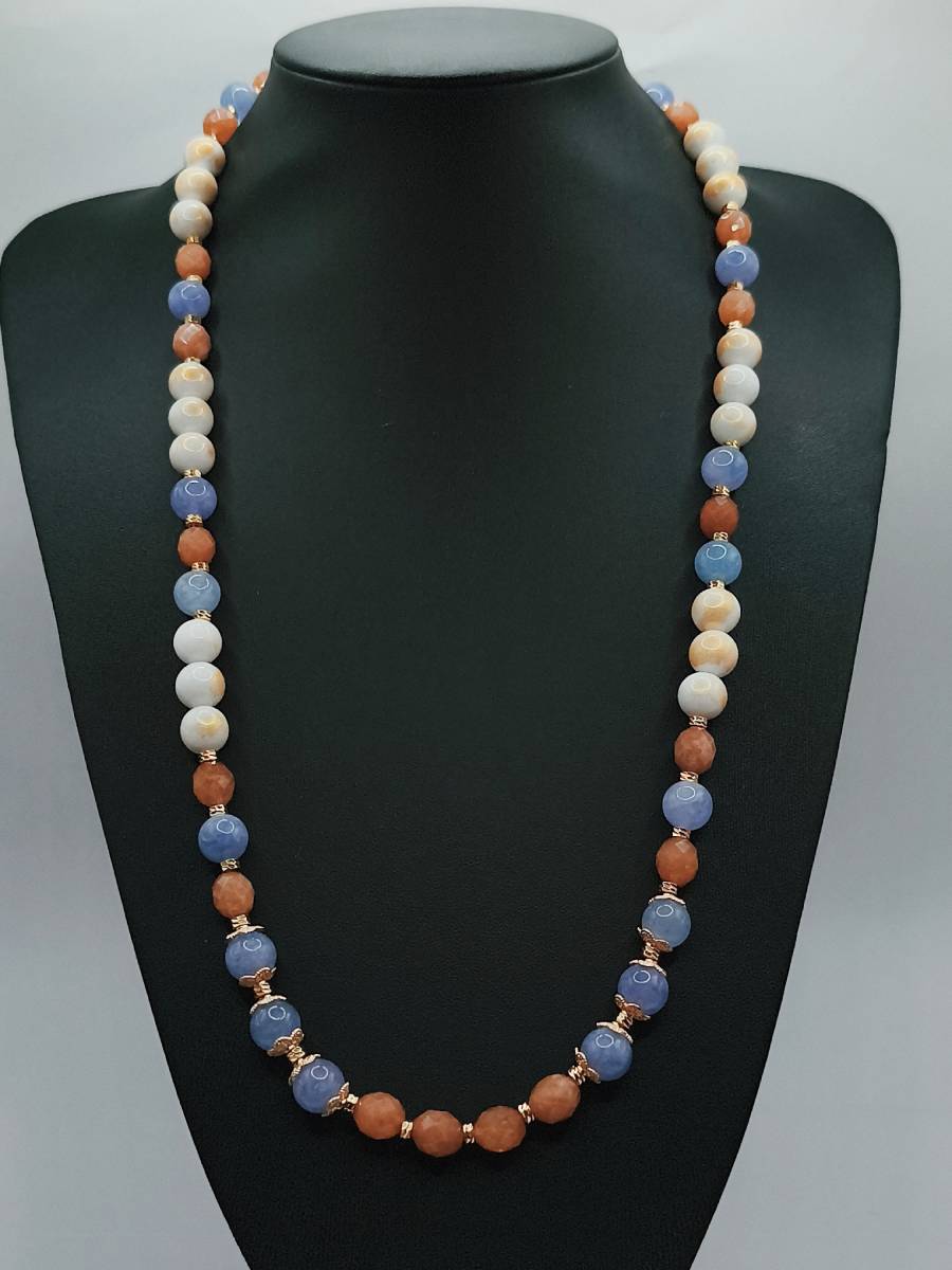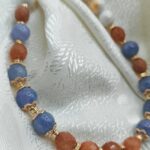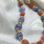 Handmade semi-precious stone necklace: a unique combination of Malaysian Jade (dyed quartz) in serene blue and brown tones, featuring Mashan Jade infused with gold powder for an exquisite glow! The brilliance is further enhanced by elegant brass elements with a gold-plated finish. A piece that perfectly captures the “old money” aesthetic, designed to accompany you beautifully every moment of the day!