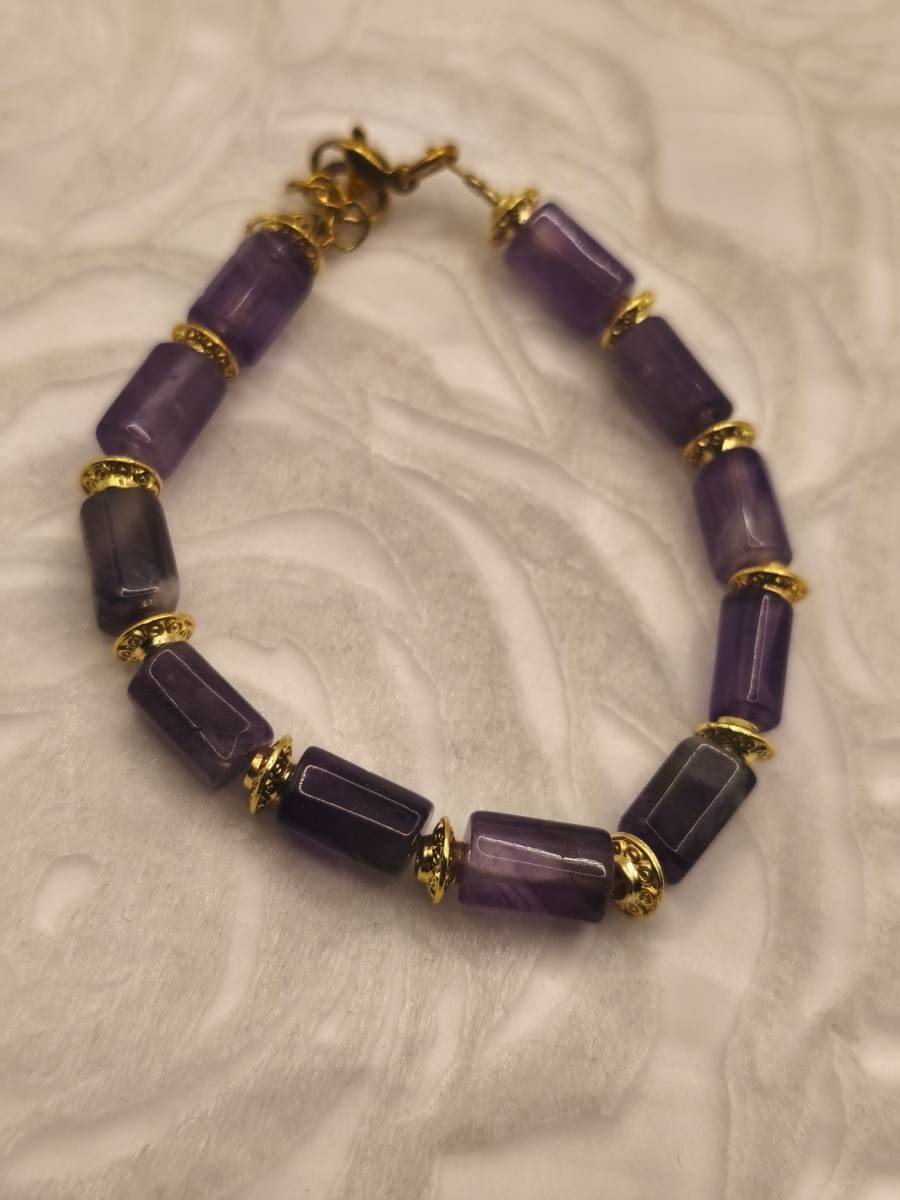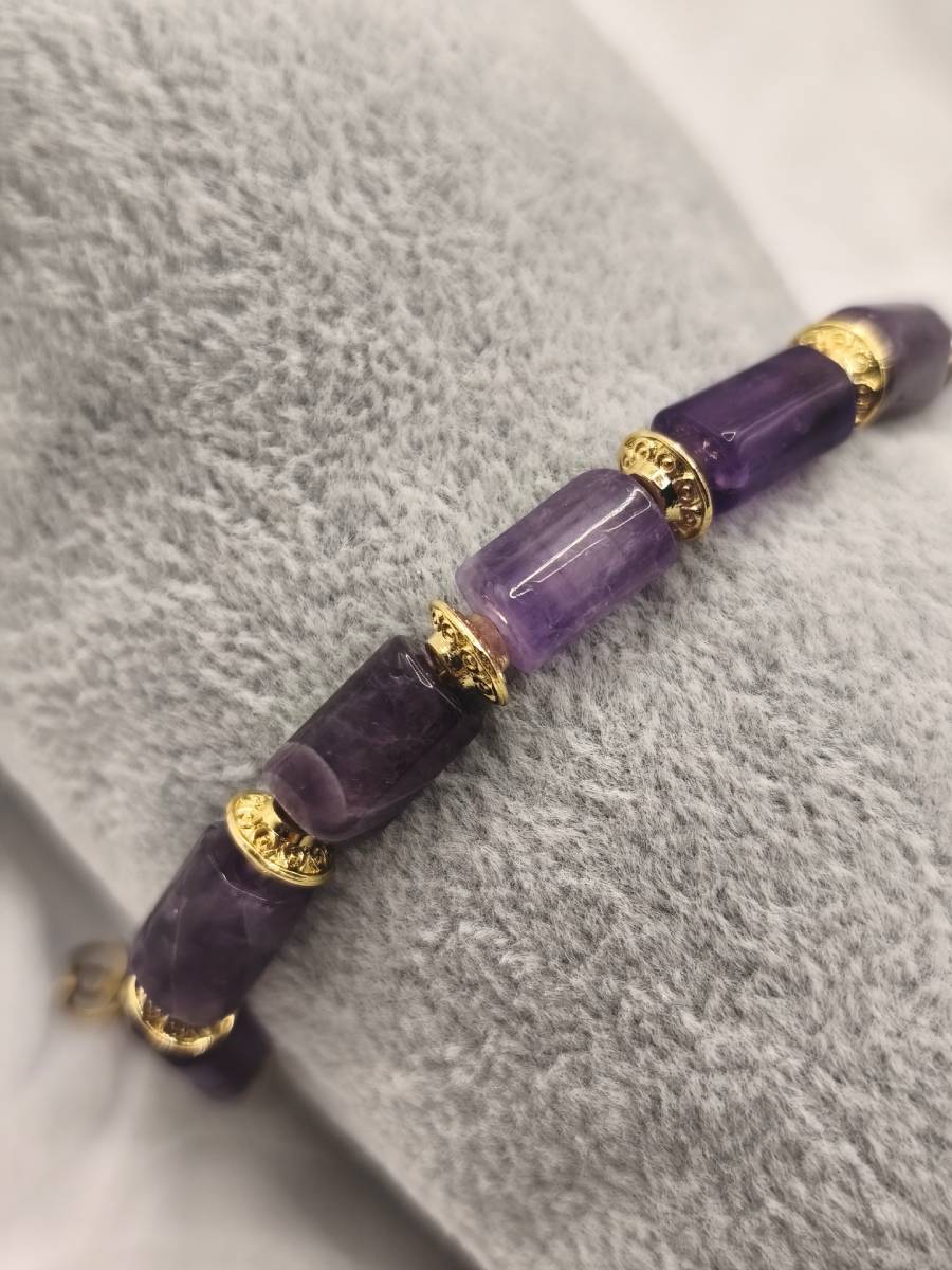- Materials: Semi-precious Amethyst stones in cylindrical (tube) shapes.