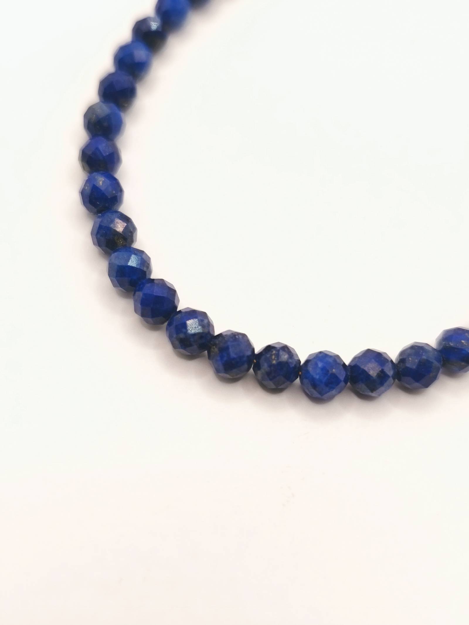 Handcrafted bracelet featuring the iconic Lapis Lazuli gemstone, renowned for its deep, captivating blue hue. The faceted stones catch and reflect light with every movement, offering a sense of discreet luxury and regal elegance. A timeless piece from the AMAVERO collection, perfect on its own or layered with other bracelets for a striking look that elevates any outfit.
