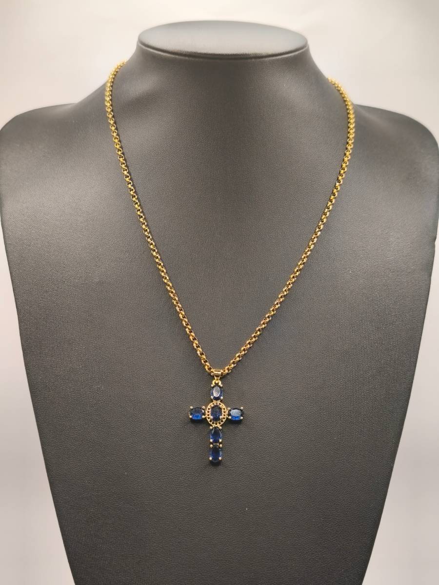- Metal: Gold-plated brass cross, Gold-tone Stainless Steel chain.