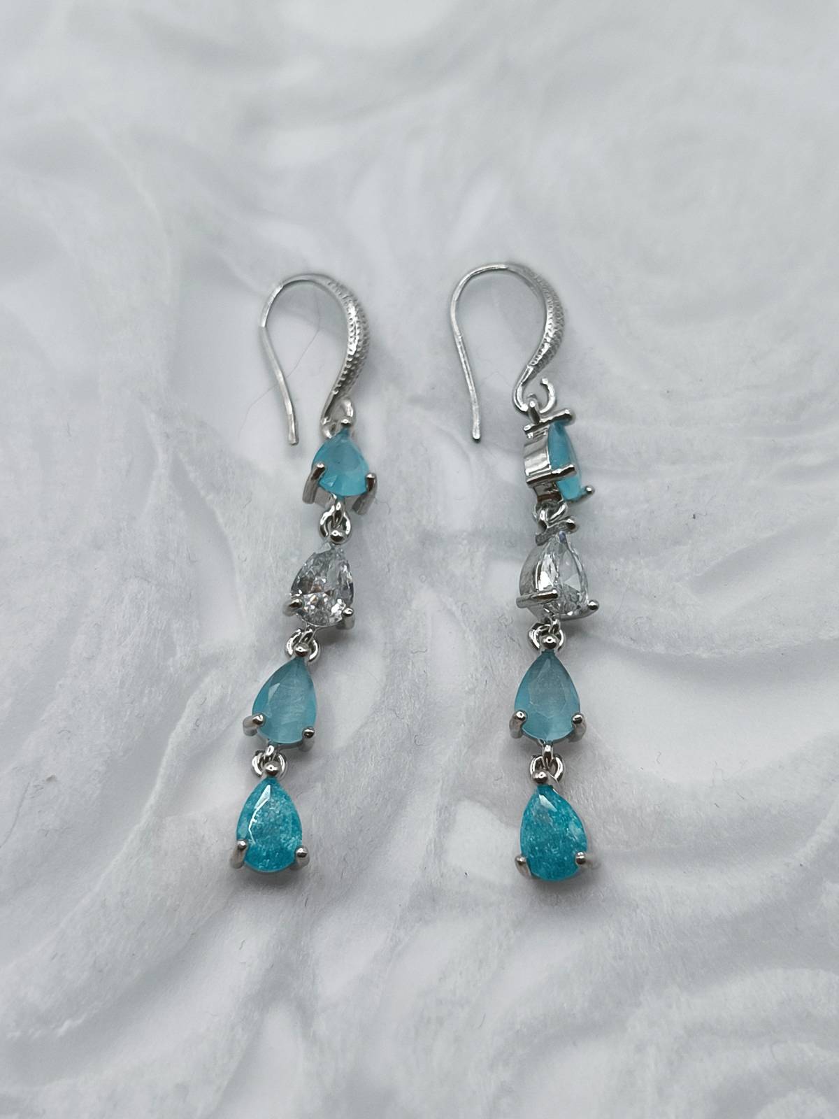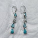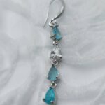 Κρεμαστά σκουλαρίκια που καθρεφτίζουν την κρυστάλλινη λάμψη των νερών του Αιγαίου. Ο συνδυασμός των γαλάζιων ζιργκόν με την ασημένια βάση δημιουργεί ένα ψυχρό, κομψό αποτέλεσμα που θυμίζει το φως του ήλιου πάνω στο κύμα. Το μακρόστενο σχήμα τους και οι λίθοι σε σχήμα δάκρυ προσφέρουν κίνηση και απαράμιλλη φωτεινότητα στο πρόσωπο. Ένα statement κόσμημα με ελληνική αύρα, ιδανικό για να προσθέσετε μια νότα δροσιάς και πολυτέλειας στις εμφανίσεις σας. Αναζητήστε τη συλλογή της Amavero και σε άλλες εντυπωσιακές αποχρώσεις!