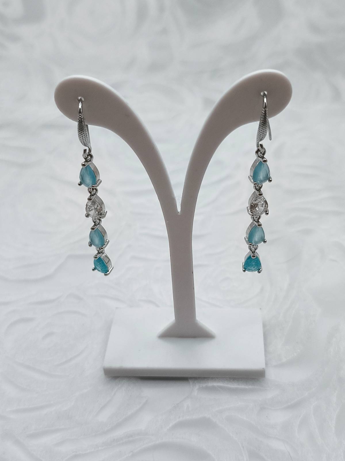 • Υλικά: Ζιργκόν (Cubic Zirconia) σε αποχρώσεις του γαλάζιου και τυρκουάζ.
