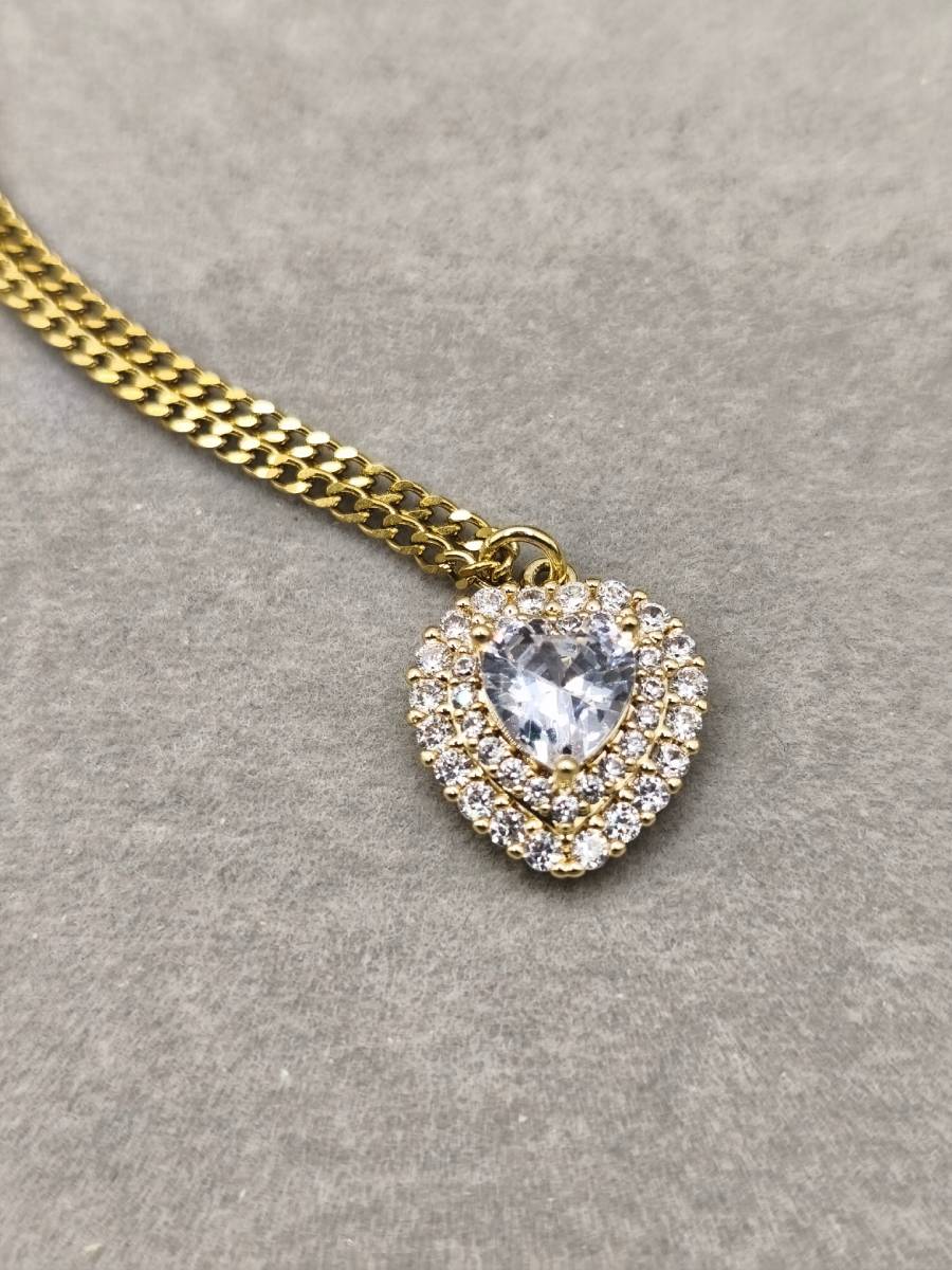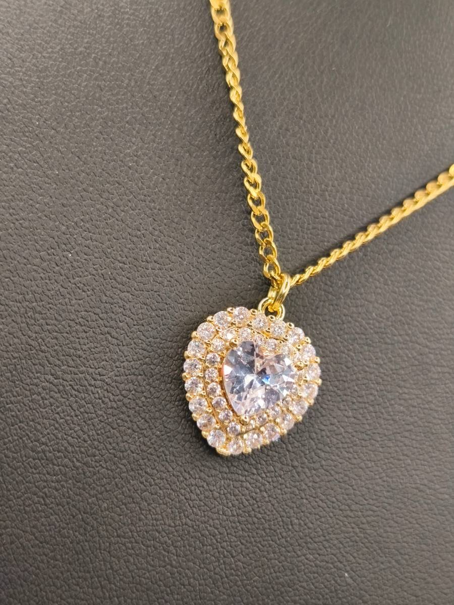 Το απόλυτο σύμβολο της αγάπης στην πιο λαμπερή του εκδοχή! Αυτό το επιβλητικό κολιέ διαθέτει ένα εντυπωσιακό κεντρικό κρύσταλλο (clear crystal) σε σχήμα καρδιάς, το οποίο περιβάλλεται από ένα διπλό «στεφάνι» (halo) από αστραφτερά μικρά ζιργκόν. Η κλασική του κομψότητα και η έντονη λάμψη του το καθιστούν μια εξαιρετική επιλογή για νύφες που αναζητούν ένα διαχρονικό και ρομαντικό κόσμημα για την πιο ξεχωριστή μέρα της ζωής τους. Ένα statement κομμάτι της AMAVERO που θα φωτίσει κάθε σας εμφάνιση με απαράμιλλη φινέτσα.