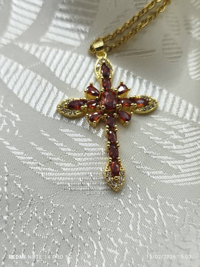 - Μέταλλο: Σταυρός από ορείχαλκο με χρυσή επιμετάλλωση, Αλυσίδα από ανοξείδωτο ατσάλι (Stainless Steel Chain).