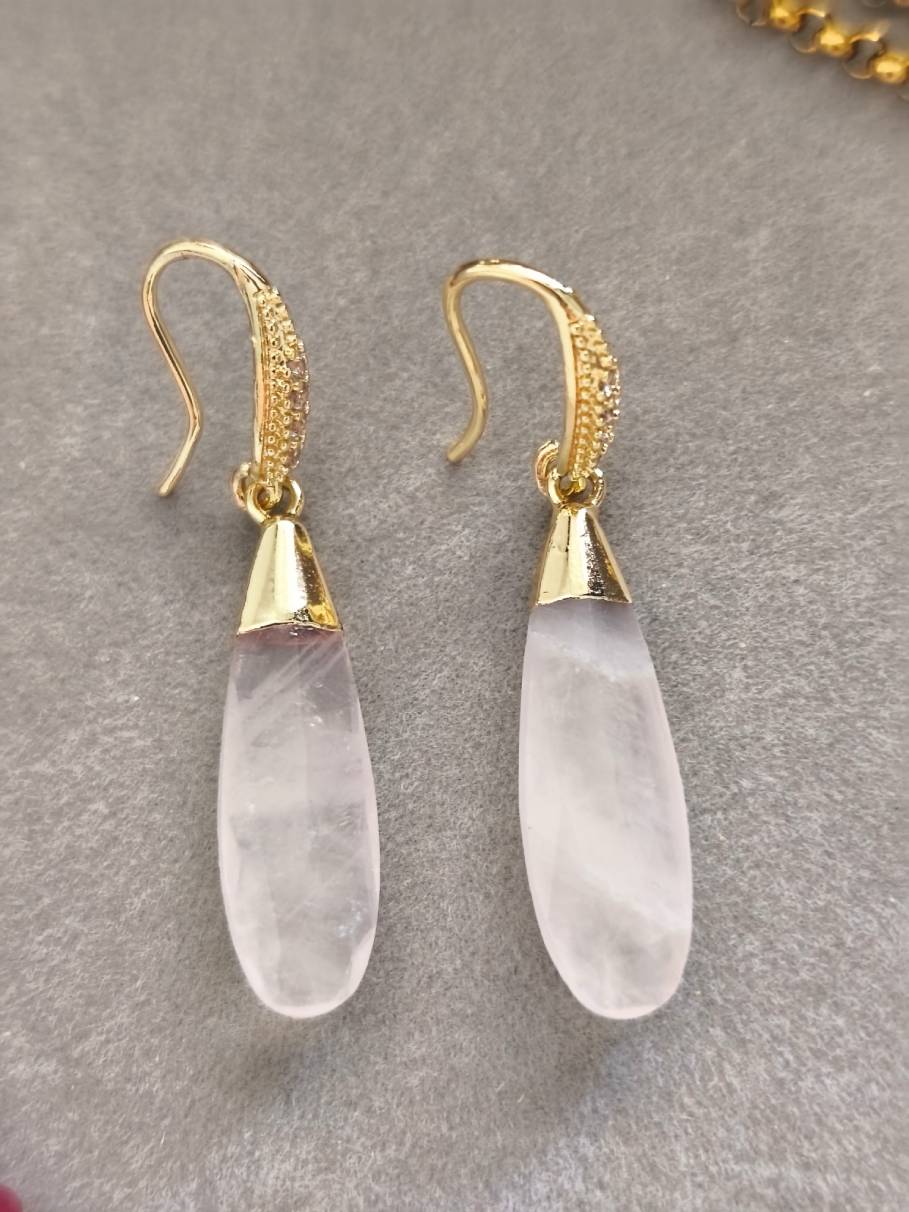• Υλικά: Ημιπολύτιμος λίθος ροζ χαλαζίας (Rose Quartz) σε σχήμα δάκρυ.