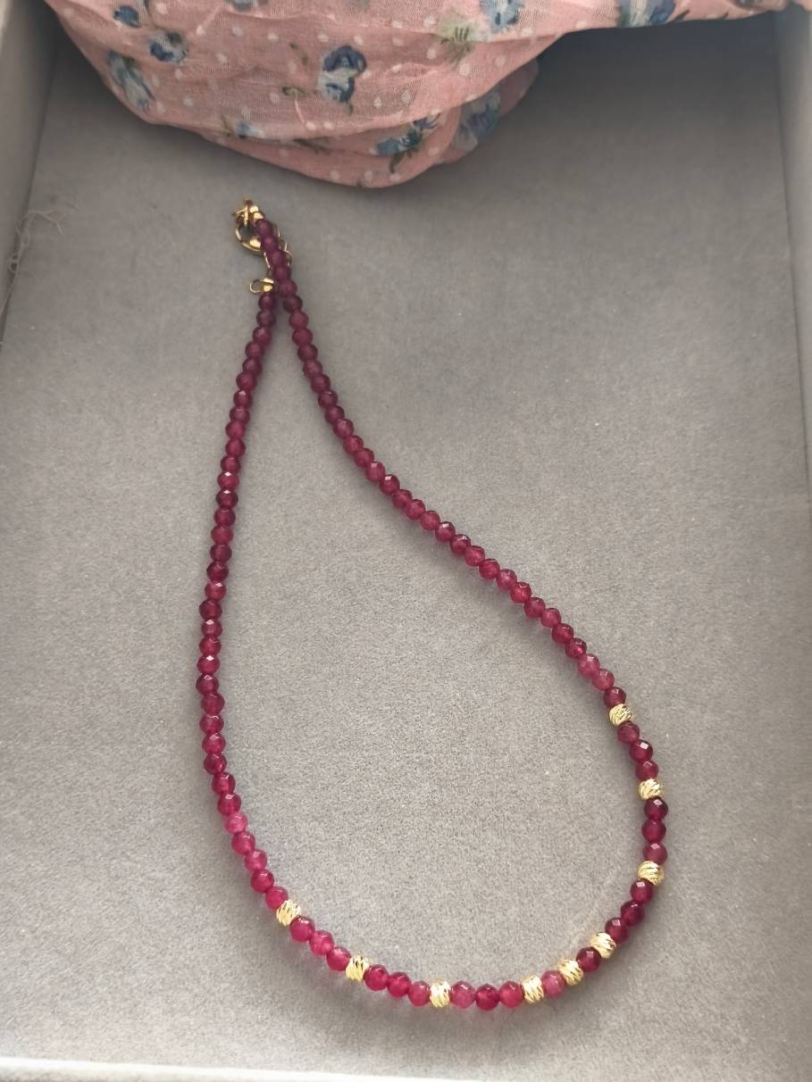 • Υλικά: Πολυεδρικός ημιπολύτιμος λίθος Νεφρίτης (Color Enhanced Jade) σε βαθύ κόκκινο χρώμα.