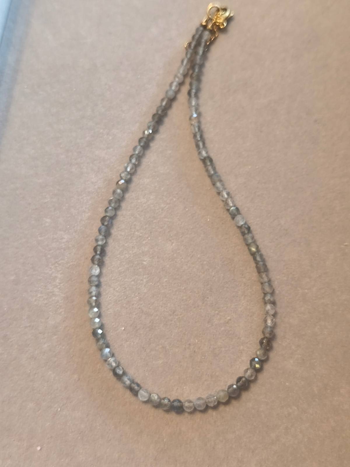 - Υλικά: Ημιπολύτιμος λίθος Λαμπραδορίτη (Labradorite) με πολυεδρική κοπή.