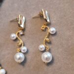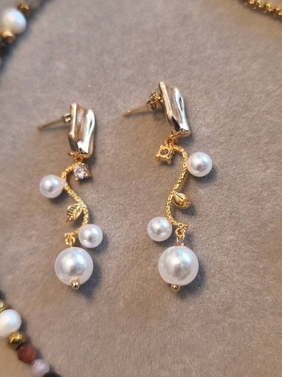 3. Κρεμαστά Σκουλαρίκια με Λευκές Πέρλες και Σχέδιο Κλαδί: