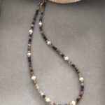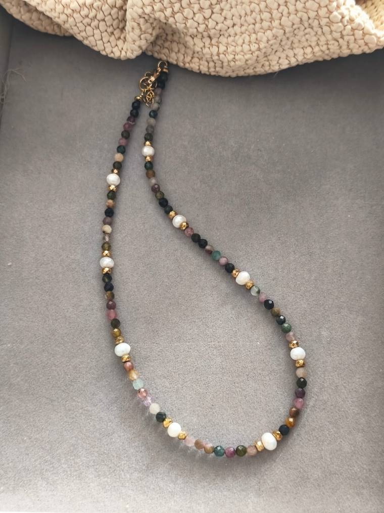 - Υλικά: Ημιπολύτιμος λίθος Τουρμαλίνη (Tourmaline) σε διάφορα χρώματα, Φυσικά Μαργαριτάρια (Natural Pearls), Στοιχεία Αιματίτη (Hematite).