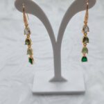 Κρεμαστά σκουλαρίκια που μαγνητίζουν τα βλέμματα, φιλοτεχνημένα με λαμπερά ζιργκόν σε υπέροχες διαβαθμίσεις του πράσινου. Το μακρόστενο και κομψό τους σχήμα προσφέρει μια αίσθηση πολυτέλειας, ενώ η κίνηση των λίθων σε σχήμα δάκρυ χαρίζει μοναδική φωτεινότητα στο πρόσωπο. Ένα statement κόσμημα, ιδανικό για να απογειώσει μια επίσημη εμφάνιση ή να προσθέσει μια νότα σμαραγδένιας λάμψης στο στυλ σας. Αναζητήστε τη συλλογή μας και σε άλλες εντυπωσιακές αποχρώσεις για να βρείτε αυτή που σας ταιριάζει!