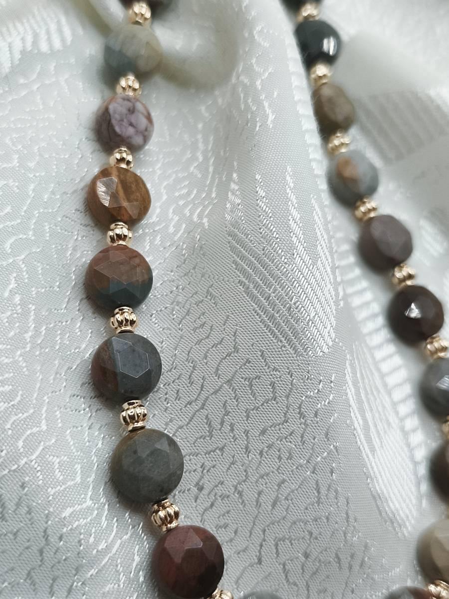 χειροποίητο κολιέ, ημιπολύτιμοι λίθοι, ίασπις picture, χρυσή επιμετάλλωση, φυσικές πέτρες, κόσμημα old money, γυναικείο δώρο, πολυεδρική κοπή, διαχρονικό κόσμημα, κλασικό κολιέ, ίασπις τοπίου