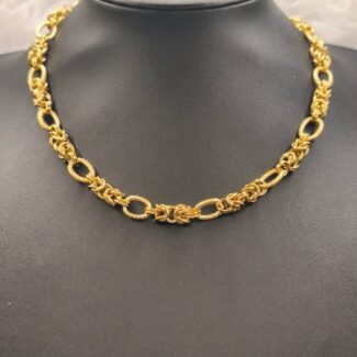 - Μέταλλο: Μενταγιόν από ορείχαλκο με επιχρύσωση 18Κ, Αλυσίδα από ανοξείδωτο ατσάλι (Stainless Steel) σε χρυσό χρώμα.