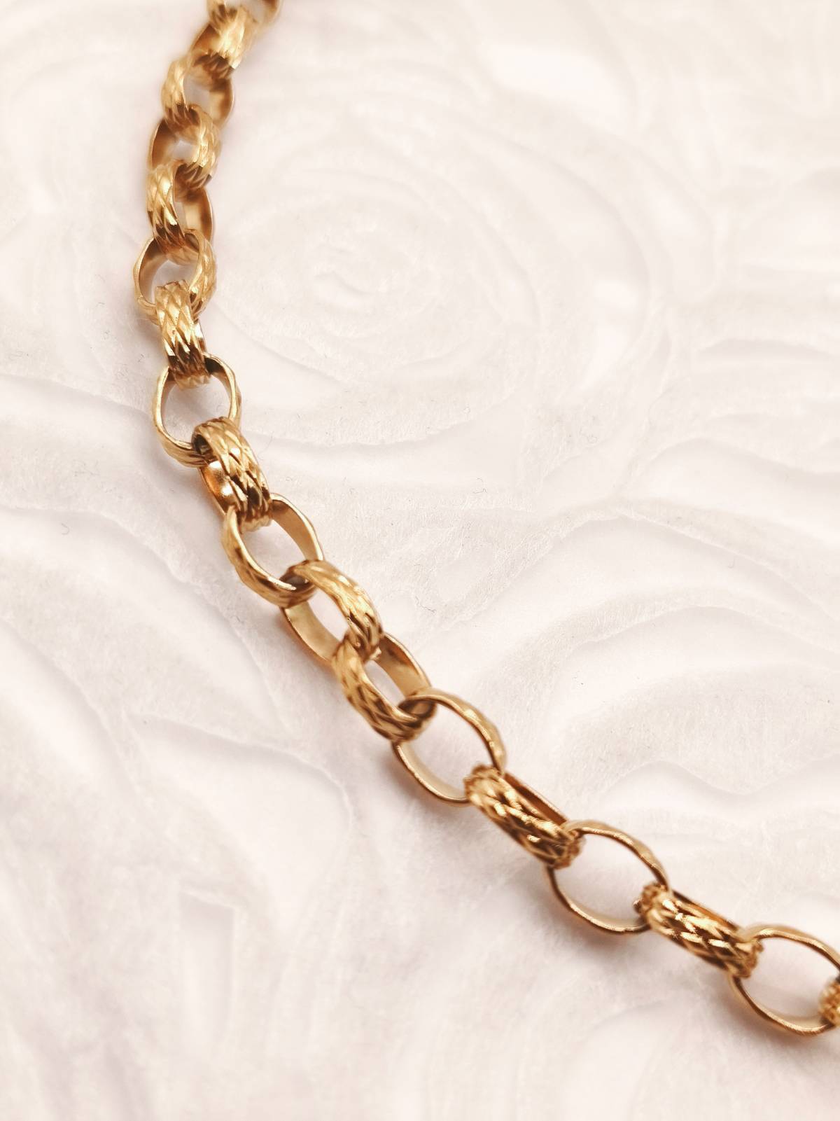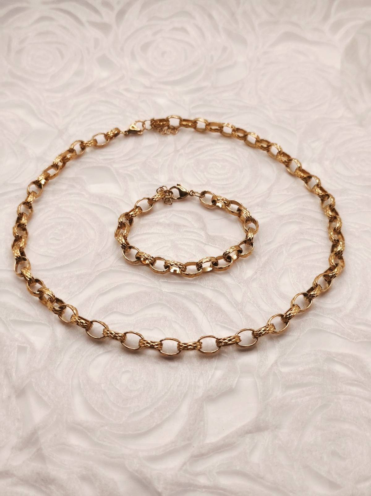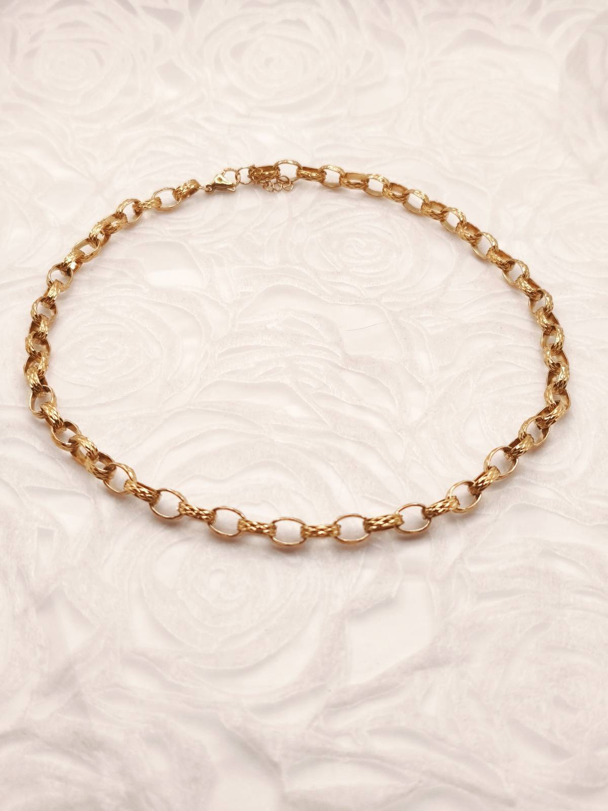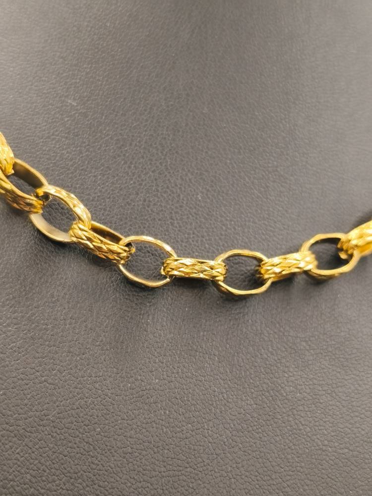 Ένα επιβλητικό και ταυτόχρονα κλασικό κολιέ με ανάγλυφους κρίκους σε στυλ “Polo Chain” που αιχμαλωτίζει το φως με τη μοναδική του υφή. Κατασκευασμένο από ανθεκτικό ανοξείδωτο ατσάλι με επιχρύσωση 18Κ, αυτό το κόσμημα προσφέρει τη λάμψη του πραγματικού χρυσού με μεγάλη αντοχή στο χρόνο. Ο ιδιαίτερος σχεδιασμός των κρίκων προσδίδει βάθος και χαρακτήρα, καθιστώντας το το απόλυτο statement κομμάτι για κάθε σας εμφάνιση. Αναζητήστε το ασορτί βραχιόλι στη συλλογή της AMAVERO και δημιουργήστε ένα ολοκληρωμένο σετ που θα κλέψει τις εντυπώσεις!