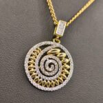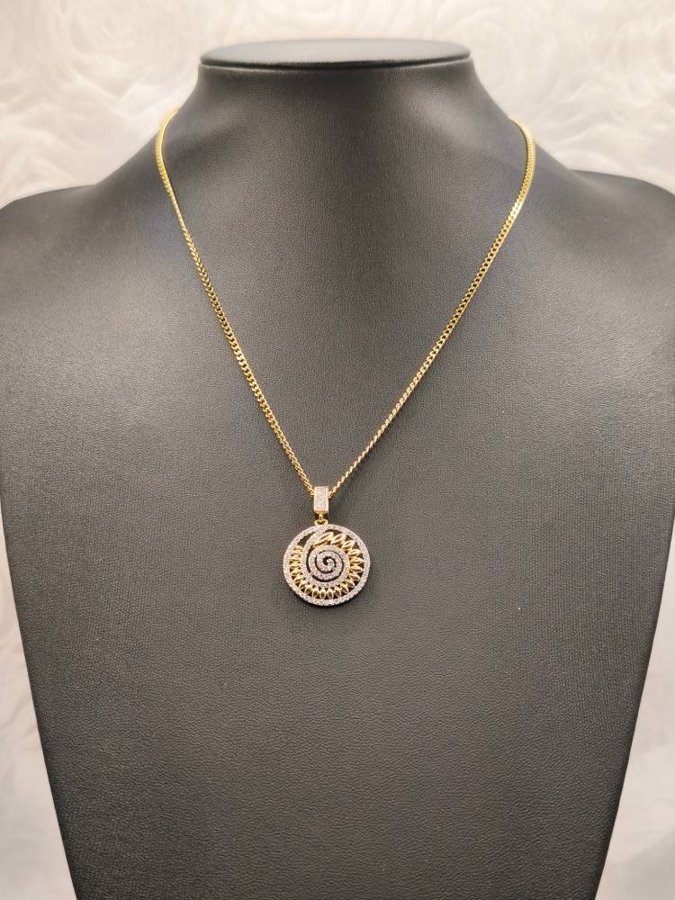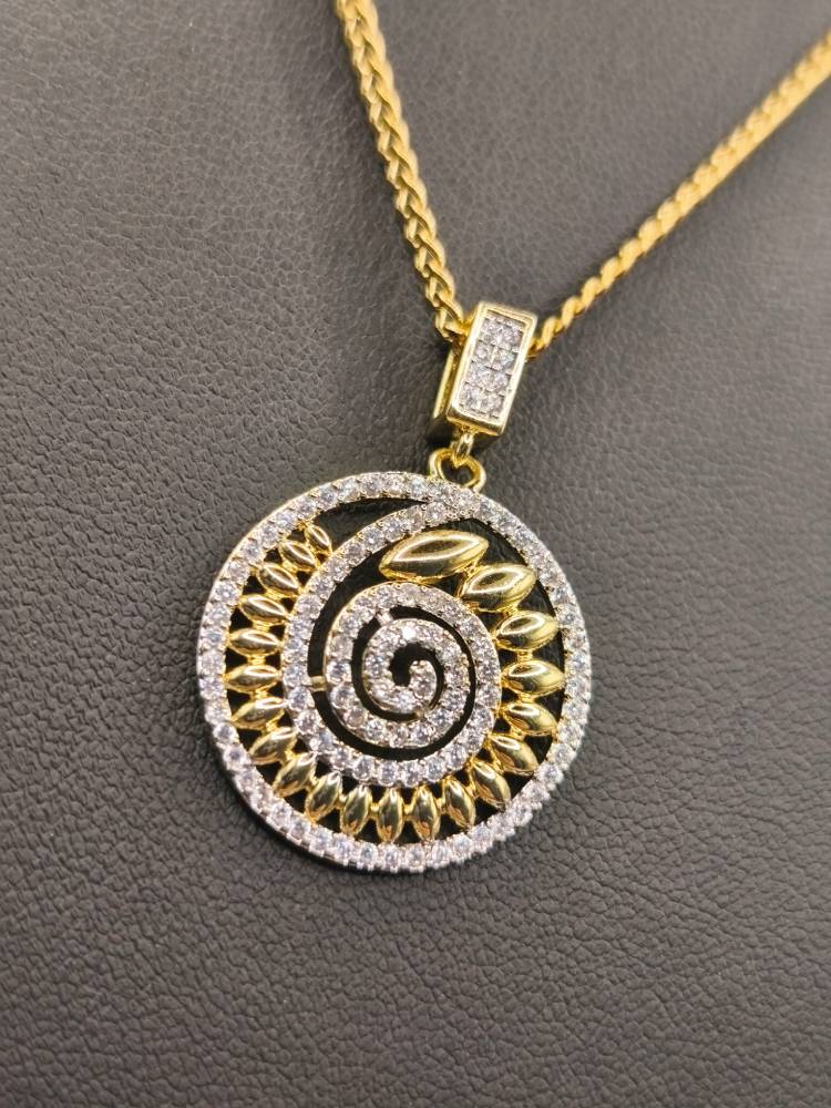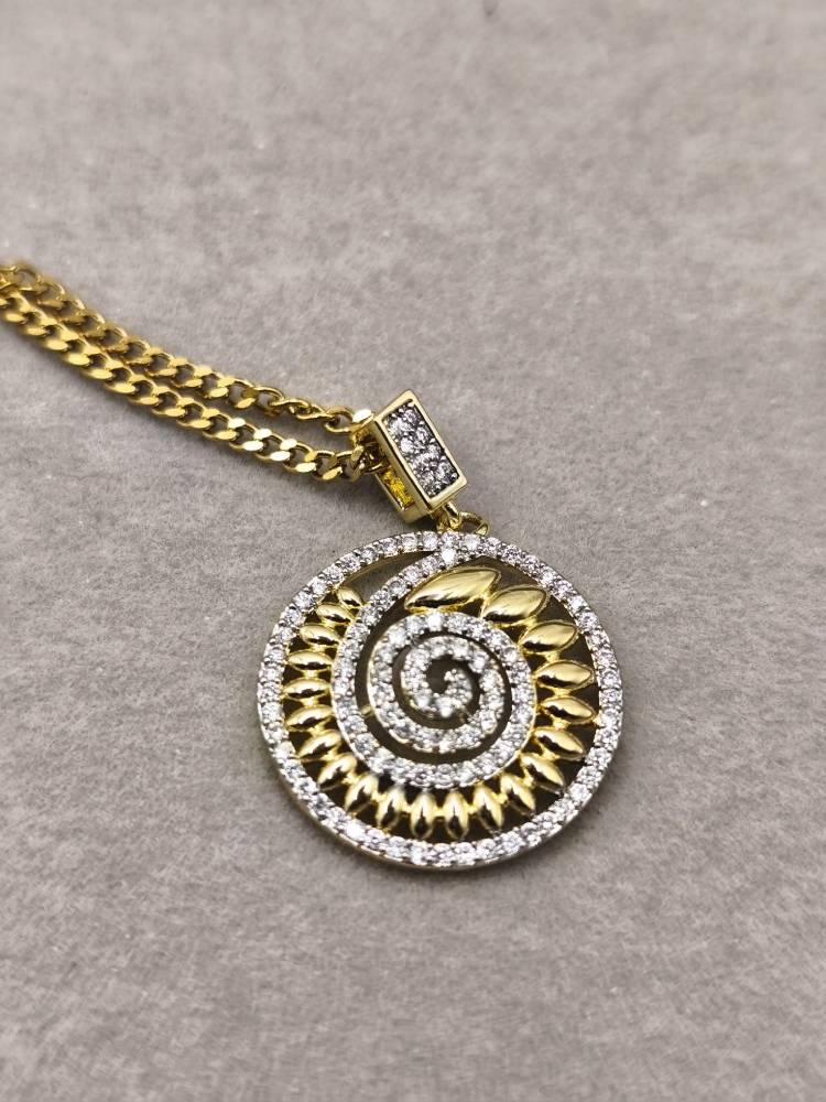 Ένα κόσμημα που συμβολίζει την εξέλιξη και την αέναη κίνηση! Αυτό το επιβλητικό κολιέ διαθέτει ένα κυκλικό μενταγιόν με έναν εντυπωσιακό σπειροειδή σχεδιασμό στο κέντρο του. Η αντίθεση ανάμεσα στον 18K επιχρυσωμένο ορείχαλκο και την περιμετρική λάμψη από αστραφτερά κρύσταλλα ζιργκόν δημιουργεί ένα πολυτελές αποτέλεσμα που μαγνητίζει το βλέμμα. Λόγω του γεωμετρικού και ταυτόχρονα οργανικού του σχήματος, αποτελεί την ιδανική βάση για το layering σας, προσφέροντας μια αίσθηση αρχαιοελληνικής φινέτσας σε κάθε σύγχρονη εμφάνιση.