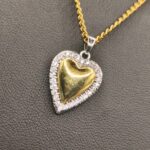 Το απόλυτο σύμβολο της αγάπης σε μια εκδοχή που ακτινοβολεί πολυτέλεια! Αυτό το επιβλητικό κολιέ διαθέτει ένα μενταγιόν σε σχήμα καρδιάς με χρυσή επιμετάλλωση 18K, η οποία περιβάλλεται από ένα λαμπερό “halo” από διπλή σειρά κρυστάλλων ζιργκόν. Ο συνδυασμός του χρυσού με τη λευκή λάμψη των κρυστάλλων δημιουργεί ένα διαχρονικό κόσμημα που μαγνητίζει το βλέμμα. Λόγω του ρομαντικού αλλά και statement χαρακτήρα του, είναι ιδανικό για layering, προσθέτοντας μια δόση λάμψης σε κάθε σας εμφάνιση.