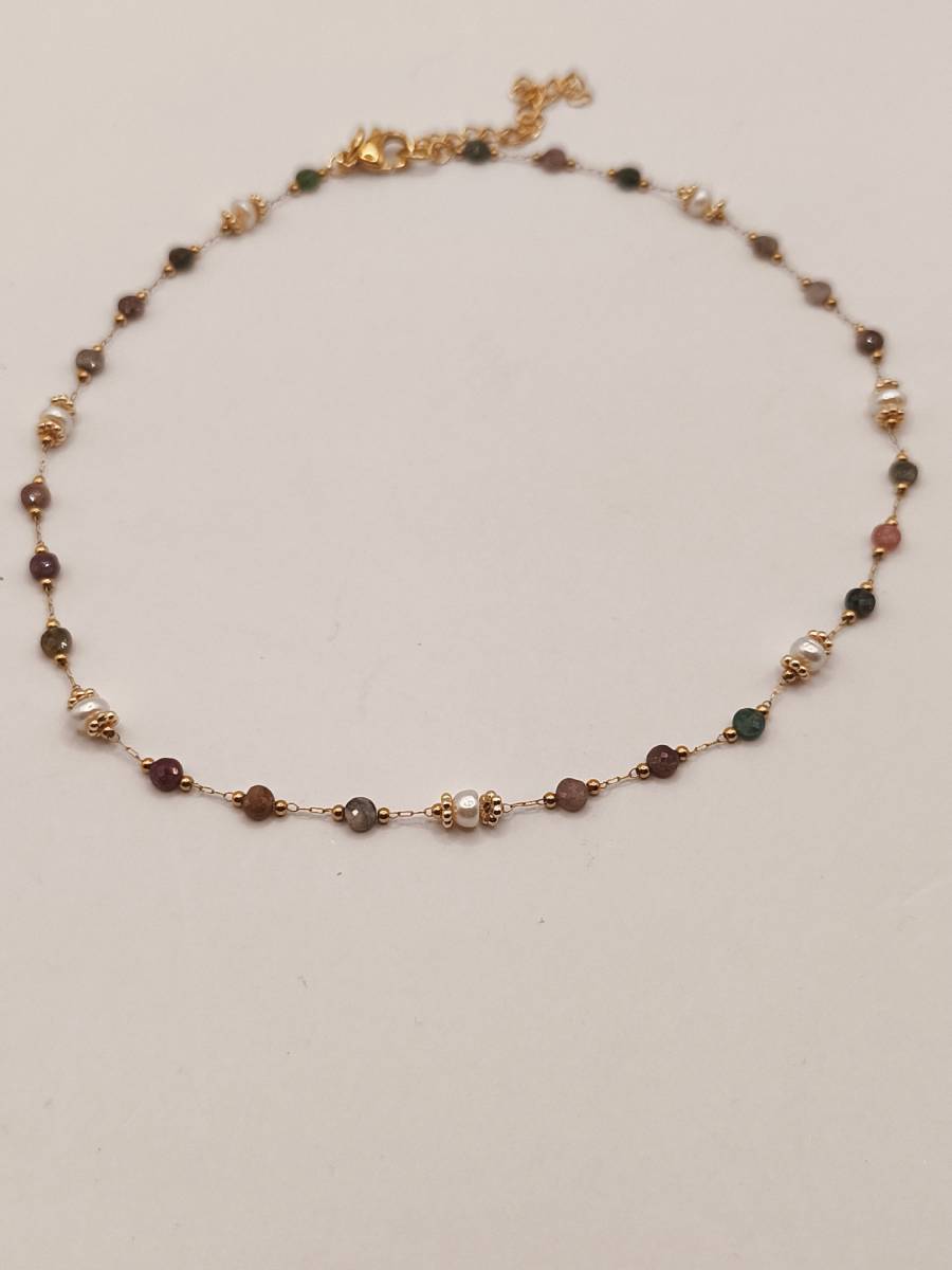 Ροζάριο από ημιπολύτιμους λίθους τουρμαλίνης σε μια υπέροχη ποικιλία χρωμάτων, σε συνδυασμό με φυσικά μαργαριτάρια καλλιέργειας. Ένα πολυδιάστατο και χαρούμενο κόσμημα που συγκεντρώνει όλες τις αποχρώσεις της φύσης, προσφέροντας λάμψη και θετική αύρα. Ο ντελικάτος του σχεδιασμός το καθιστά ιδανικό για layering αλλά και ως ένα ξεχωριστό, πολύχρωμο δώρο για τις μικρές μας πριγκίπισσες. Ανακαλύψτε τη μαγεία της πολύχρωμης τουρμαλίνης στη συλλογή της Amavero και αφήστε την να σας ενθουσιάσει!